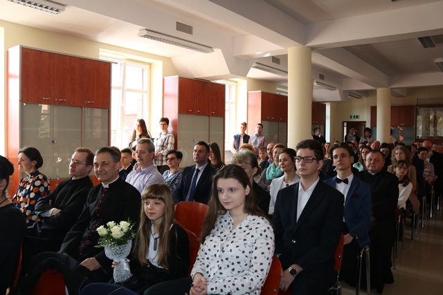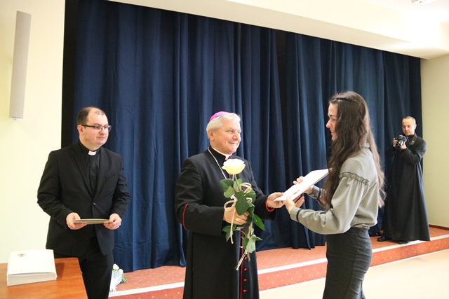 Podczas gali wręczenia stypendiów ks. Witold Kałmucki, diecezjalny duszpasterz młodzieży zachęcał uczniów i studentów do angażowania się w życie Kościoła. Zapraszał na comiesięczne spotkania organizowane w kościołach na terenie diecezji kaliskiej w ramach Stand Up oraz Festiwal Tratwa, który odbędzie się w dniach 14-16 czerwca w Pleszewie.