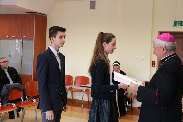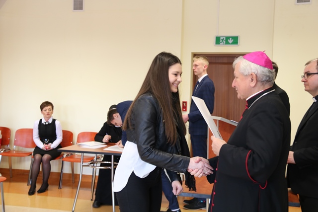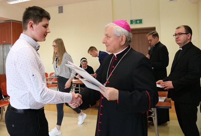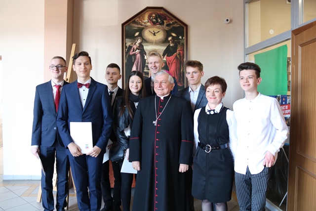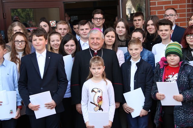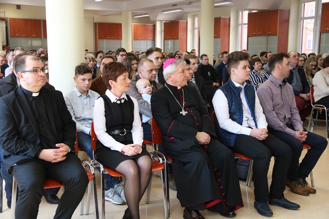 Biskup kaliski podkreślił, że w życiu młodego człowieka bardzo ważną rolę odgrywają dom rodzinny, szkoła oraz Kościół i tylko wtedy, kiedy te instytucje mówią jednym głosem dobrze formują jego charakter. – Wy jesteście wielką radością dla waszych rodziców – mówił do młodych bp Janiak.
