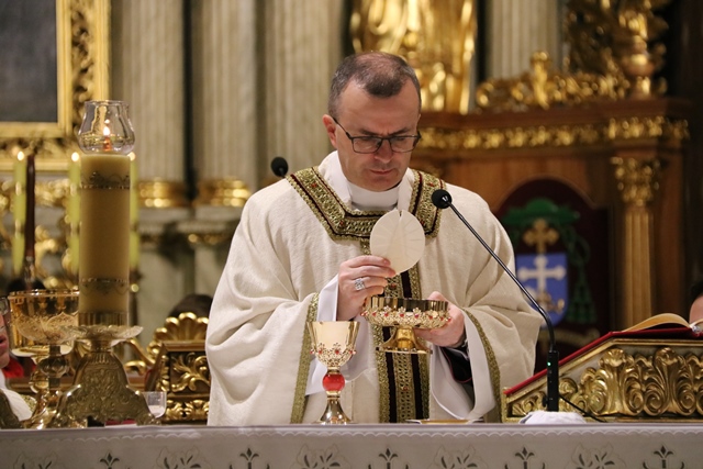 Fot. Ewa Kotowska-Rasiak/KAI– Dzisiaj w czasie Ostatniej Wieczerzy towarzyszymy Jezusowi, który ustanawia Eucharystię, Jezusowi, który obmywa uczniom nogi pokazując na czym ma polegać najważniejsze przykazanie miłości – mówił biskup kaliski Damian Bryl, który przewodniczył Mszy Wieczerzy Pańskiej w katedrze św. Mikołaja w Kaliszu.