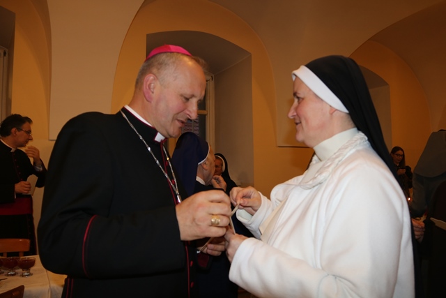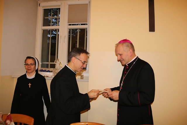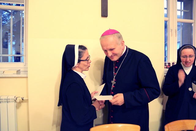 Po Mszy św. w refektarzu Domu Sióstr Nazaretanek bp Łukasz Buzun życzył siostrom zakonnym, aby wnosiły i jednocześnie same czerpały Boże światło i ciepło.
