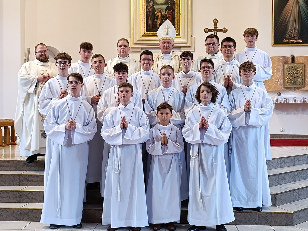 Wraz z bp. Łukaszem Buzunem Mszę św. koncelebrowali: ks. Mateusz Paprocki, diecezjalny duszpasterz służby liturgicznej i księża opiekunowie ministrantów w parafiach, z których pochodzą lektorzy.