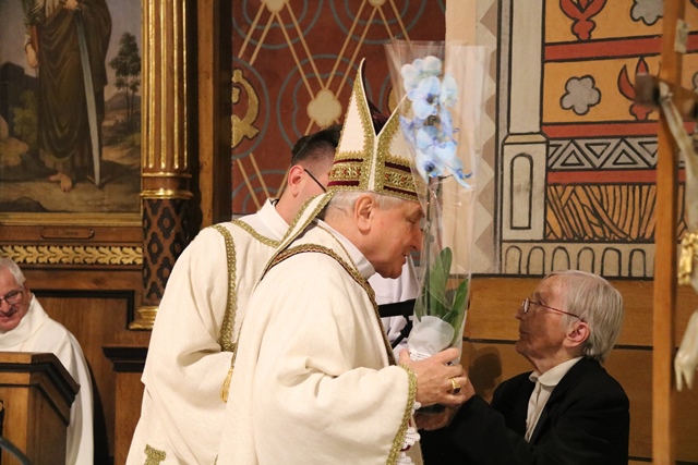 Po komunii św. w imieniu duchowieństwa i wiernych przemówił bp Łukasz Buzun, który dziękował za posługę pasterską w diecezji i zapewnił o współpracy. Słowa podziękowania wypowiedzieli także przedstawiciele sióstr zakonnych, Akcji Katolickiej, Domu św. Brata Alberta oraz parafian, którzy życzyli opieki Bożej w dalszym prowadzeniu diecezji.