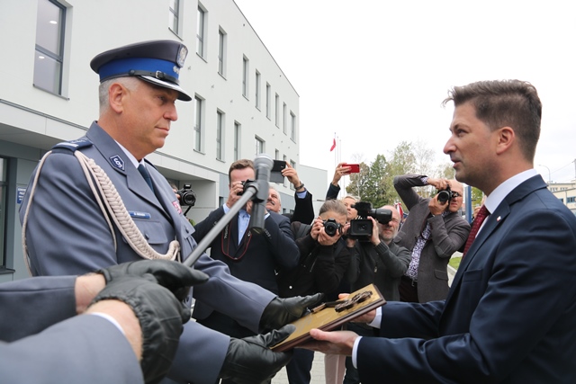 Podczas uroczystość minister Sylwester Tułajew przekazał symboliczny klucz do komendy inspektorowi Dariuszowi Bieńkowi, komendantowi miejskiemu policji w Kaliszu.