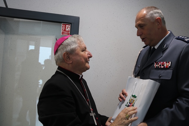 Biskup kaliski Edward Janiak ofiarował krzyż dla Miejskiej Komendy Policji w Kaliszu.