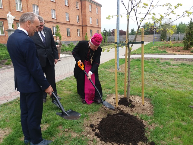 Druga część spotkania odbyła się w Wyższym Seminarium Duchownym w Kaliszu, gdzie przed budynkiem posadzono lipy. Jedną z nich zasadził bp Janiak.