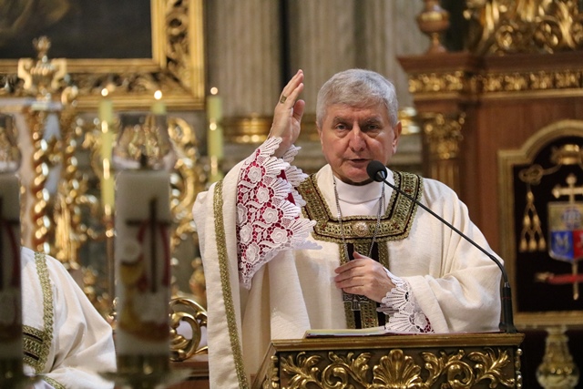 W homilii biskup pomocniczy diecezji kaliskiej wskazywał, że podstawową troską Jezusa było, aby wszyscy stanowili jedno. – Życzeniem Jezusa Chrystusa było, aby wszyscy, którzy wierzą w Chrystusa i żyją nauką Ewangelii, żyli w jedności, nie byli podzieleni. Tylko jedność w miłości pozwala nam żyć w Bogu – powiedział kaznodzieja.