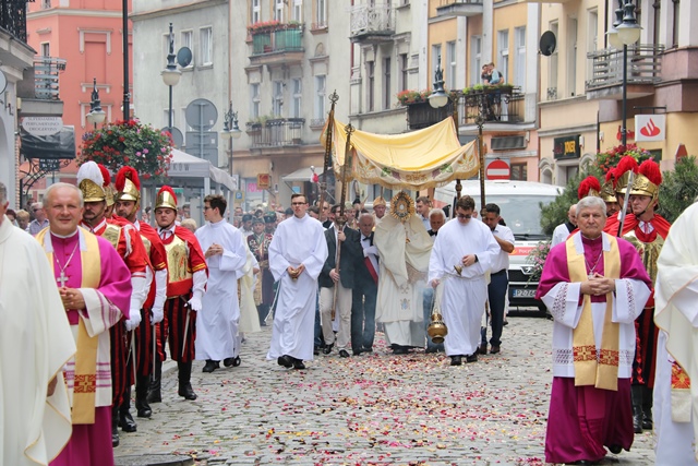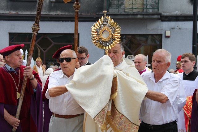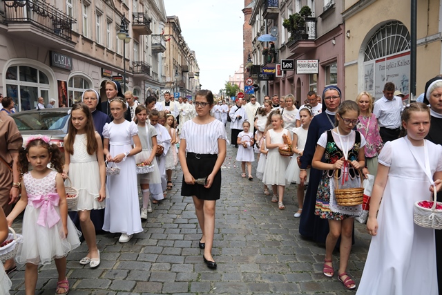 Procesję rozpoczęła Msza św. w katedrze św. Mikołaja pod przewodnictwem biskupa kaliskiego Edwarda Janiaka. Wierni przeszli ulicami miasta na rynek, gdzie bp Łukasz Buzun udzielił błogosławieństwa Najświętszym Sakramentem.