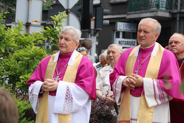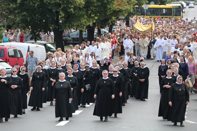Zachęcał wiernych, aby wpatrywali się w Jezusa i Jego Matkę. – Stajemy dzisiaj w tym miejscu, żeby Boga obecnego w Eucharystii, wędrującego po ulicach Kalisza, pytać jak żyć, jak Mu się podobać, jak kochać braci i siostry w swojej codzienności. Niech Pan, który prowadzi nas po drogach naszego życia i Jego Matka, będą dla nas najlepszymi przewodnikami po drogach naszej wiary – mówił biskup pomocniczy diecezji kaliskiej.