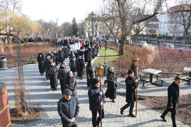 Fot. Ewa Kotowska-Rasiak/KAIMieszkańcy Kalisza przeszli ulicami miasta w 34. drodze krzyżowej, rozpoczynając w ten sposób Wielki Post. – Niech ten udział we wspólnej modlitwie będzie mocnym, jasnym, klarownym świadectwem naszego przywiązania do krzyża i tego, że chcemy dalej iść za Chrystusem, Panem naszym, bo nie ma innej drogi, bo nie ma innego Pana – mówił na rozpoczęcie drogi krzyżowej biskup kaliski Damian Bryl, który przewodniczył nabożeństwu.