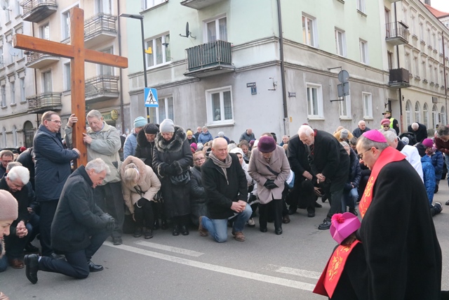 Nabożeństwo zakończyło się przy kościele ojców jezuitów, gdzie biskup kaliski podziękował za wspólnie przeżytą drogę krzyżową. – Ta nasza dzisiejsza droga krzyżowa miała nam na nowo przypomnieć, że Jezus chce zbawienia każdego człowieka. Chce zbawienia nas, którzy dzisiaj byliśmy blisko krzyża i tych, którzy jeszcze wobec krzyża odwracają się, albo są obojętni. Jezusowi także na nich zależy. Ufamy, że ta nasza dzisiejsza modlitwa może pomóc także tym, którzy jeszcze w krzyżu nie odkryli swojej drogi, a w Jezusie swojego Pana – podkreślił bp Bryl.