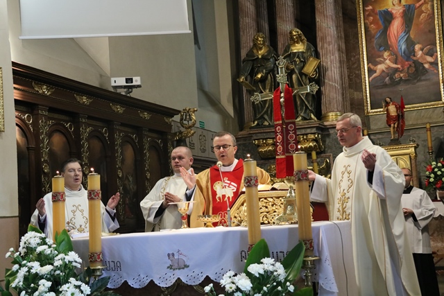 Wraz z biskupem kaliskim Damianem Brylem Mszę św. koncelebrowali: ks. kan. dr Michał Kieling, delegat biskupa kaliskiego ds. życia konsekrowanego w diecezji kaliskiej i ks. dr Krzysztof Niciejewski, diecezjalny egzorcysta.