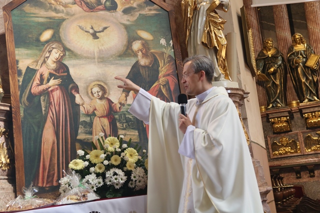 W homilii ks. kan. dr Jarosław Powąska opowiedział o historii powstania obrazu Świętej Rodziny, który znajduje się w Kaplicy Cudownego Obrazu św. Józefa Kaliskiego.