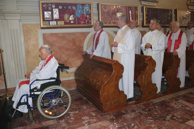 Licznie przybyłych jezuitów powitał ks. prał. Jacek Plota. – Pozdrawiam wszystkich zgromadzonych na 72. Pielgrzymce Ojców i Braci Jezuitów z całej Polski z obu prowincji, którzy od 1950 r. przybywają z pielgrzymką wdzięczności do św. Józefa, aby dziękować za cudowne ocalenie przed zamknięciem domów zakonnych, jakie miało miejsce w latach 50. w wielu krajach socjalistycznych. Jezuici zostali obronieni, ponieważ zawierzyli się św. Józefowi – mówił kustosz Sanktuarium św. Józefa.
