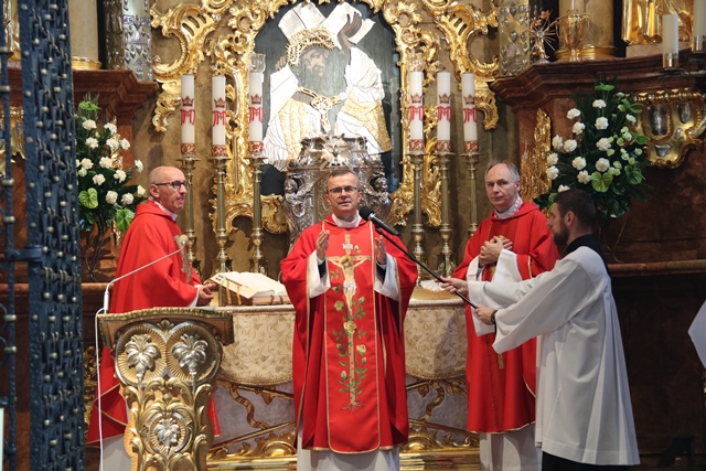 Podkreślał, że jezuici każdego roku przybywają do kaliskiego sanktuarium, aby zawierzyć się opiece św. Józefa, którego wstawiennictwa doświadczyli szczególnie w czasach komunistycznych, kiedy zakonowi w Polsce groziło zamknięcie. – Zawierzyliśmy naszą posługę, nasz zakon św. Józefowi i nie zawiedliśmy się. W tym roku w sposób szczególny chcemy też powierzyć naszych współbraci na Ukrainie, tych wszystkich, którym oni posługują, chcemy prosić za cały naród ukraiński. Dzisiaj w święto Podwyższenia Krzyża w Kościele w sposób szczególny modlimy się za naród ukraiński, który doświadcza krzyża wojny. Prosimy Pana o sprawiedliwy pokój, prosimy o pomoc dla tych wszystkich, którzy doświadczają skutków wojny – akcentował jezuita.