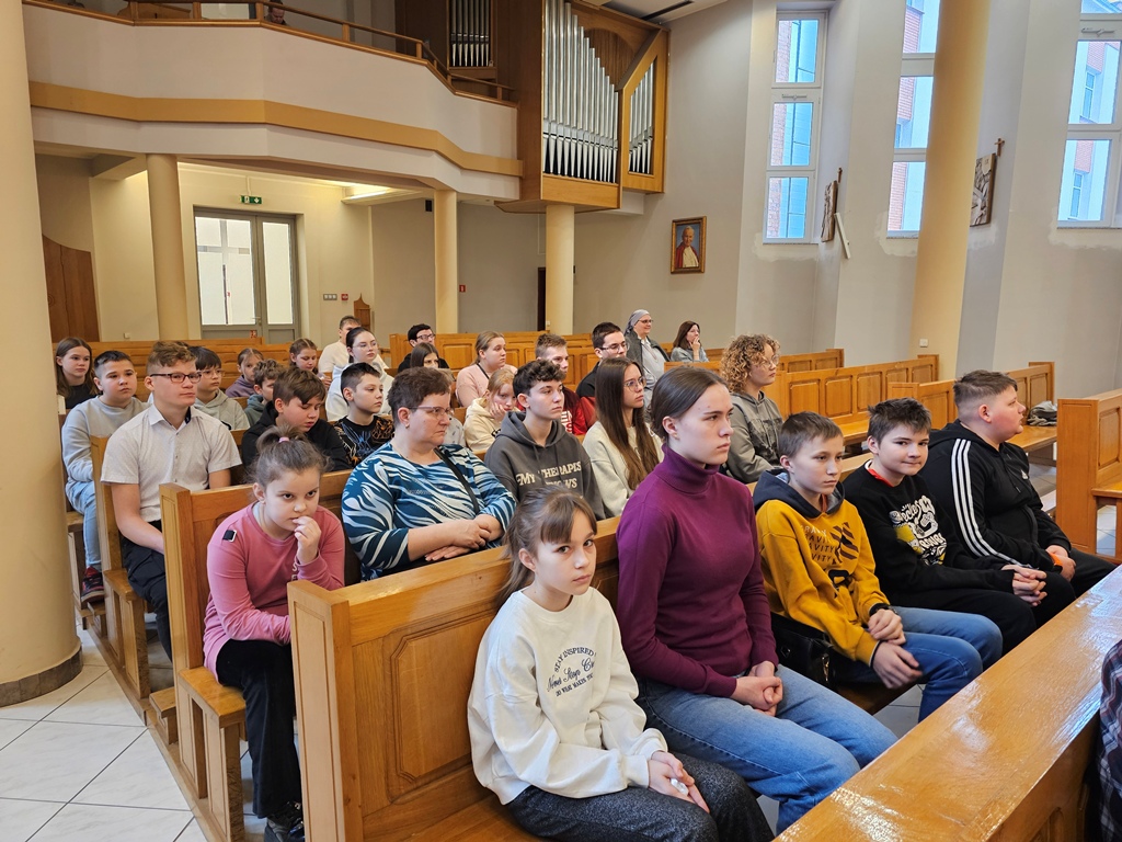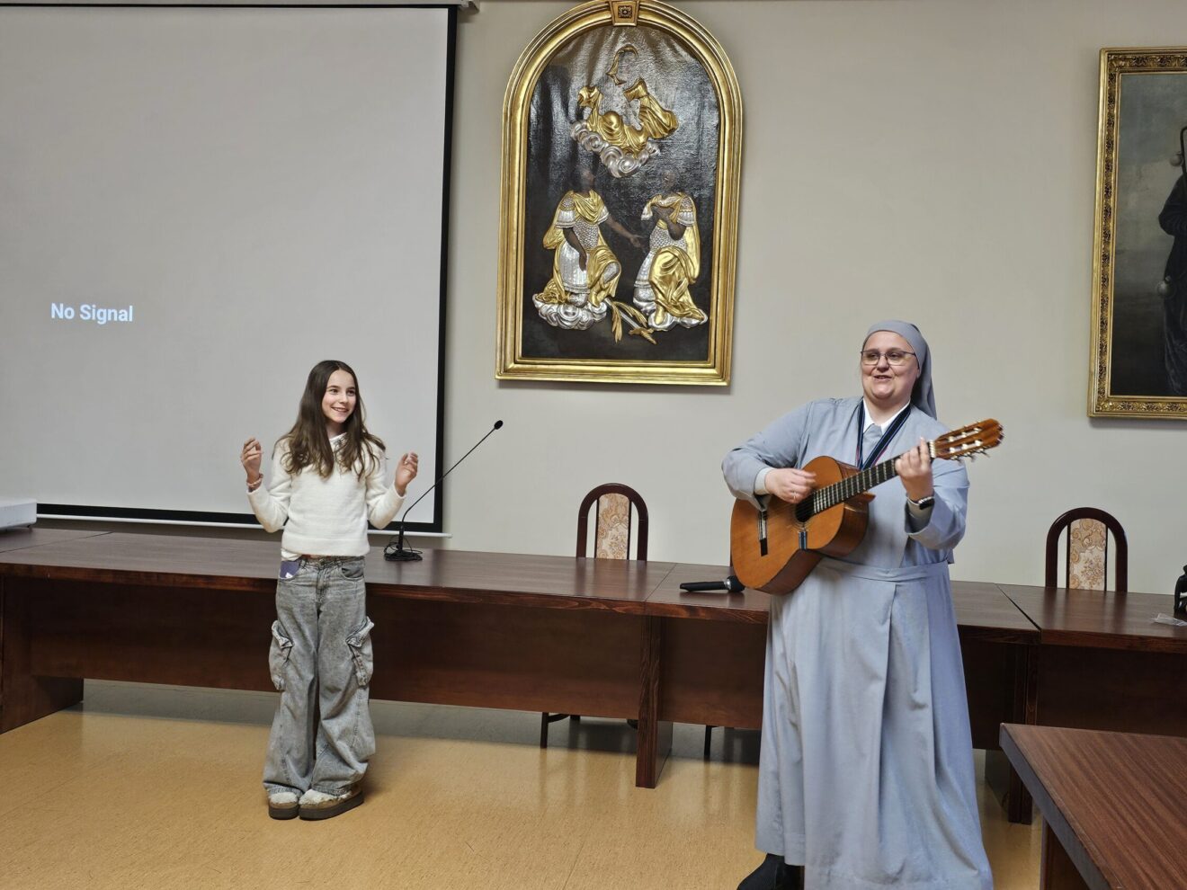 Następnie dzieci miały okazję spotkać się z s. Anną Jarosz, która opowiedziała o trudnej sytuacji ich rówieśników w krajach misyjnych. Wskazała, że dzieci są wykorzystywane jako tania siła robocza albo jako żołnierze do walk. Zaznaczyła, że na świecie co sześć sekund umiera z głodu jedno dziecko. Był też czas na wspólny śpiew, ponieważ s. Anna nauczyła dzieci afrykańskich śpiewów.