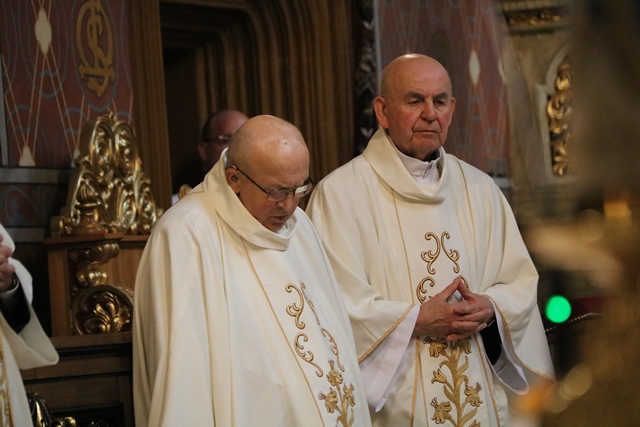 W katedrze św. Mikołaja w Kaliszu modlili się księża, którzy świętują 50. i 60. rocznicę święceń kapłańskich.