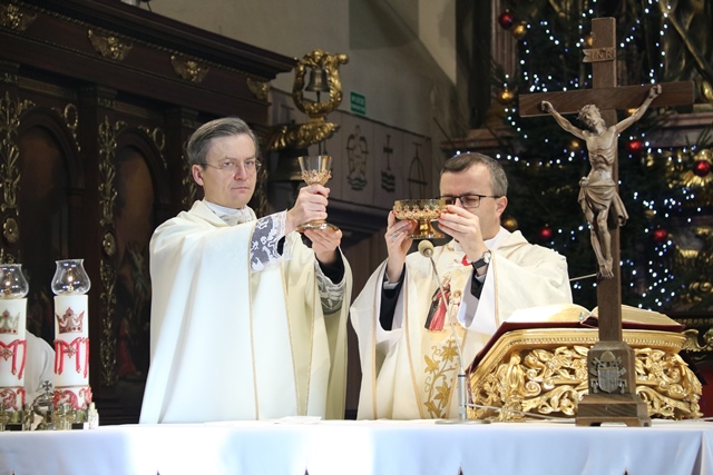Wraz z biskupem kaliskim Damianem Brylem Mszę św. koncelebrował ks. kan. dr Jarosław Powąska, dyrektor Wydziału Katechetycznego Kurii Diecezjalnej w Kaliszu.