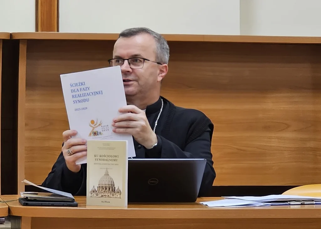 Trzeci temat dotyczył realizacji założeń synodalnych w diecezji kaliskiej. Ks. Witold Kałmucki, dyrektor Wydziału Duszpasterskiego Kurii Diecezjalnej wskazywał, że konkretną propozycją wejścia na drogę odnowy i szukania dobrych rozwiązań jest zaproszenie Parafialnych Rad Duszpasterskich, a także innych osób zainteresowanych do zatrzymania się nad wybranymi fragmentami dokumentu końcowego Synodu. Duchowny zaproponował zorganizowanie czterech takich spotkań, podczas których poruszone zostaną m.in. tematy „Nowe spojrzenie na Kościół”, „Znaczenie i wyrazy synodalności”, „Troska o relacje”.