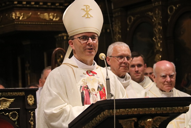 Fot. Ewa Kotowska-Rasiak/KAIPrawie 2000 osób z całej Polski wzięło udział w XXVII Ogólnopolskiej Pielgrzymce Rodzin Domowego Kościoła do Narodowego Sanktuarium św. Józefa w Kaliszu. – Chciałbym zaprosić całą wspólnotę Domowego Kościoła, żebyście wzajemnie wspierali się w wychowaniu dzieci i szukali dobrych sposobów, aby pokazać im Jezusa – mówił w homilii bp Damian Bryl, który przewodniczył Mszy św.