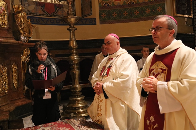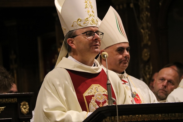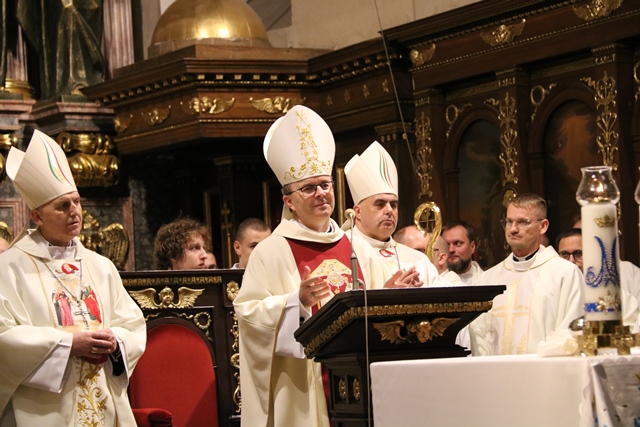 Fot. Ewa Kotowska-Rasiak/KAI– Bycie wiarygodnym jest fundamentalne, aby innych przyprowadzić do Boga – mówił biskup kaliski Damian Bryl, który przewodniczył Mszy św. w Narodowym Sanktuarium św. Józefa w Kaliszu w ramach trwającego drugi dzień Ogólnopolskiego Forum Duszpasterstwa Młodzieży odbywającego się pod hasłem „Parafia drugim domem”.