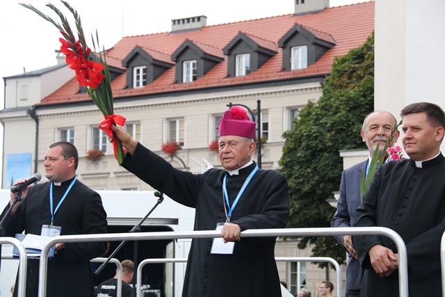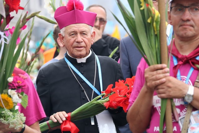 Zaznaczył, że pielgrzymi publicznie okazali świadectwo swojej wiary. – Pielgrzymom należy się wdzięczność. Diecezja jest wdzięczna pielgrzymom, Kościół jest wdzięczny pielgrzymom szczególnie w tym roku, kiedy w kraju jest dużo zamętu, chaosu duchowego. To jest spowodowane odrzuceniem Boga w życiu publicznym. Jak nie ma Boga, nie ma przykazań Bożych, nie ma norm moralnych, panuje chaos, zamęt. W tej sytuacji wyrzucenia Boga z przestrzeni publicznej idzie pielgrzymka, idzie przez Polskę, wioski, miasta, osiedla, idzie w ruchu samochodowym. Pielgrzymi idą i dają świadectwo. W ten sposób mówią, że jest Bóg. To jest publiczne świadectwo wiary, jakie ci ludzie złożyli Panu Bogu i Polsce w tych dniach i za to jesteśmy im bardzo wdzięczni – akcentował bp senior.