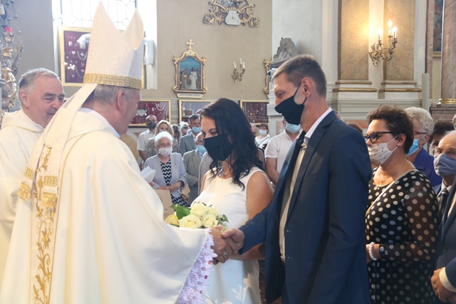 Prosił też małżonków, aby swój dom budowali na fundamencie, którym jest Jezus. – Dom życia małżeńskiego, który budujemy opierajmy na słowie Bożym. Fundament domu jest ważny, bo przyjdą burze, nawałnice, a z Bogiem to wszystko małżonkowie pokonają. Skałą jest odniesienie do Chrystusa, bliskość z Nim – zaznaczył bp Buzun.