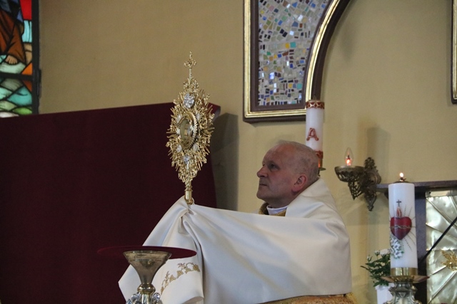 Po Mszy św. biskup odmówił litanię do Najświętszego Serca Pana Jezusa i udzielił błogosławieństwa Najświętszym Sakramentem.