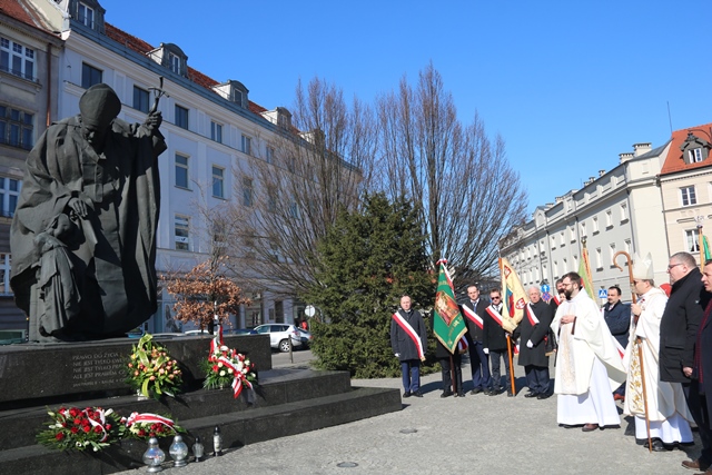 Pielgrzymkę zakończyła procesja pod figurę św. Jana Pawła II, gdzie złożono kwiaty i odśpiewano Barkę.