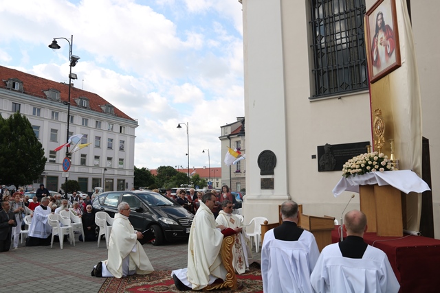 Fot. Ewa Kotowska-Rasiak/KAIMieszkańcy Kalisza uczestniczyli w procesji ku czci Najświętszego Serca Jezusowego, której przewodniczył bp Damian Bryl. Przy ołtarzu obok sanktuarium św. Józefa biskup kaliski odmówił modlitwę przebłagalno-wynagradzającą.