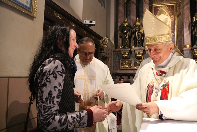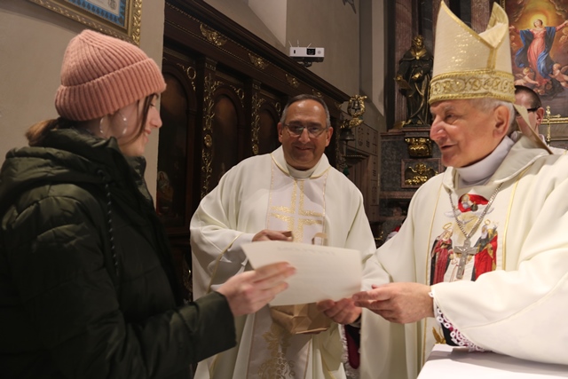 Laureaci odebrali nagrody i dyplomy z rąk biskupa kaliskiego Edwarda Janiaka, ks. kan. Sławomira Kostrzewy, diecezjalnego duszpasterza rodzin i Jolanty Siwak, doradczyni diecezjalnej życia rodzinnego.