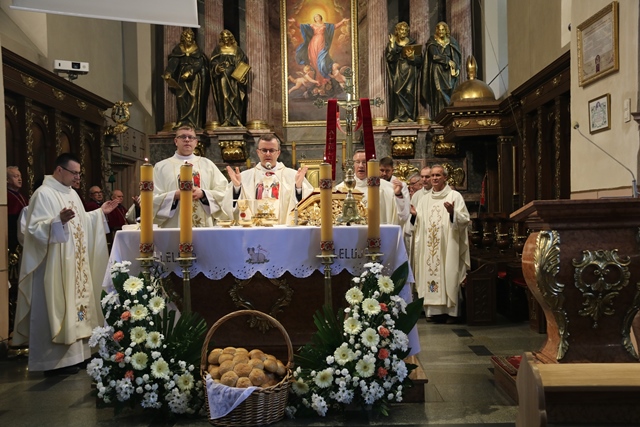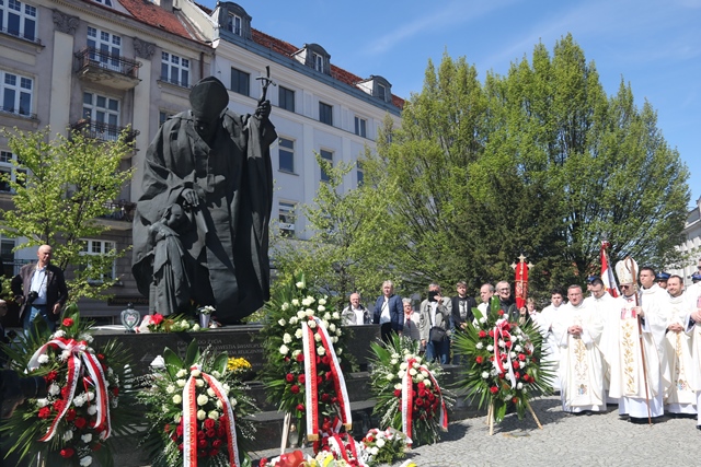 Uroczystość zakończyła się pod figurą św. Jana Pawła II, gdzie odśpiewano Barkę i złożono kwiaty. Tradycyjnie już biskup podzielił się chlebem ze zgromadzonymi na uroczystości.