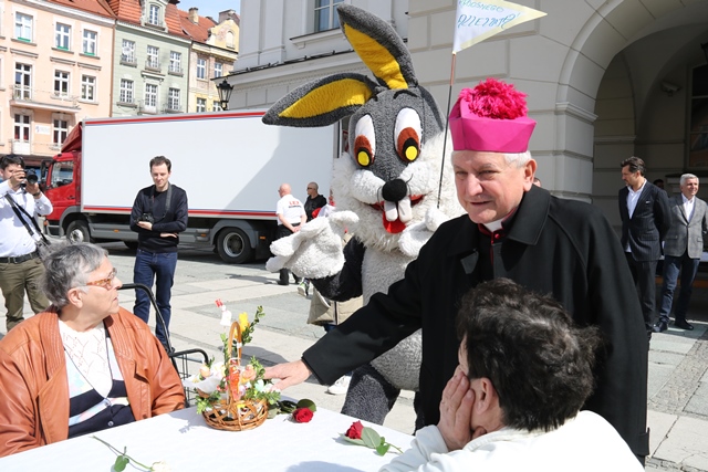 Zebranym na kaliskim Rynku biskup złożył także życzenia. – Życzę błogosławieństwa Bożego, zdrowia, dobrych ludzi na waszej drodze życia, abyście nie czuli się samotni i opuszczeni – powiedział bp Janiak. Życzenia złożyli także prezydent Kalisza Krystian Kinastowski i dyrektor Caritas Diecezji Kaliskiej ks. Jacek Andrzejczak.