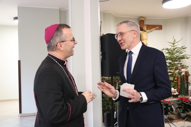 Fot. Ewa Kotowska-Rasiak/KAI– Życzę, żeby dotykanie tajemnicy Bożego Narodzenia było światłem, drogowskazem, ale także źródłem siły i umocnienia, żeby służyć człowiekowi – mówił biskup kaliski Damian Bryl podczas spotkania świątecznego z przedstawicielami lokalnych władz w budynku seminarium duchownego w Kaliszu. W spotkaniu uczestniczył także biskup pomocniczy Łukasz Buzun.