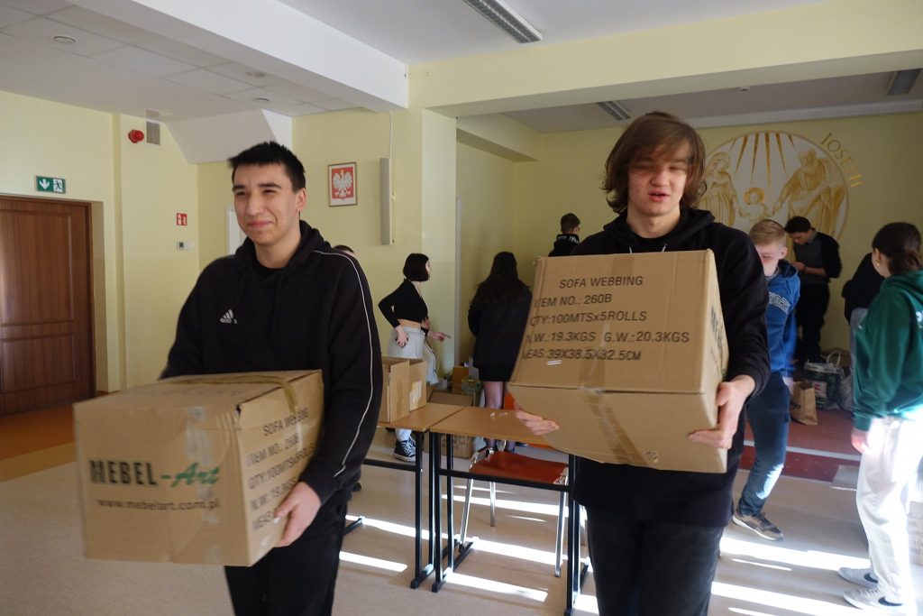 Cały czas w technikum prowadzona jest zbiórka darów, które na bieżąco są sortowane i przewożone do PCK.