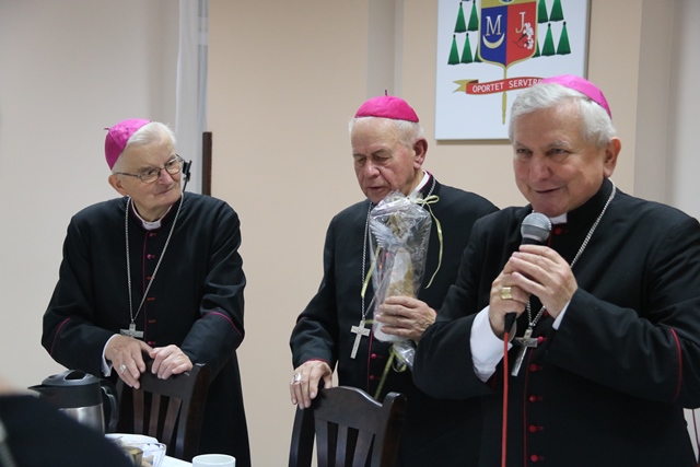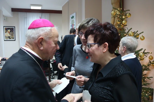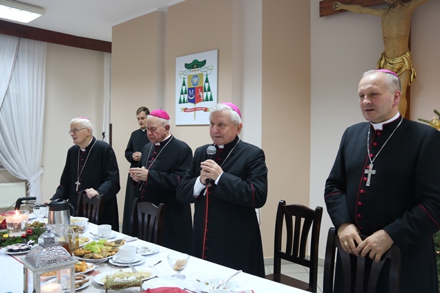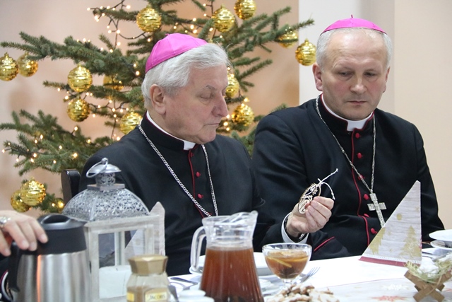 Przed łamaniem się opłatkiem słowo do zgromadzonych skierował biskup kaliski Edward Janiak. – Wszystkim moim współpracownikom dziękuję za trud i gorliwą służbę Kościołowi kaliskiemu. Bardzo ważną rolę dzisiaj w Kościele spełniają media, którym dziękuję za pracę – zaznaczył hierarcha.