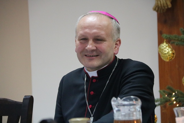 Fot. Ewa Kotowska-Rasiak KAI– Wszystkim serdecznie dziękuję za trud i gorliwą służbę Kościołowi kaliskiemu – mówił bp Edward Janiak do pracowników instytucji centralnych diecezji kaliskiej. Wieczerzę wigilijną w Wyższym Seminarium Duchownym w Kaliszu poprzedziła Msza św., której przewodniczył biskup kaliski.