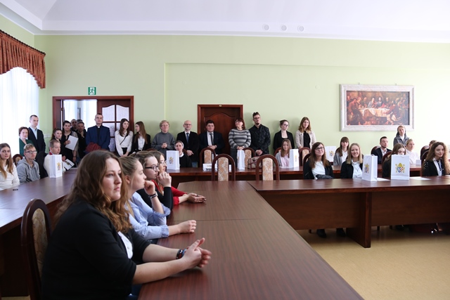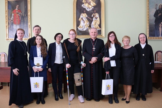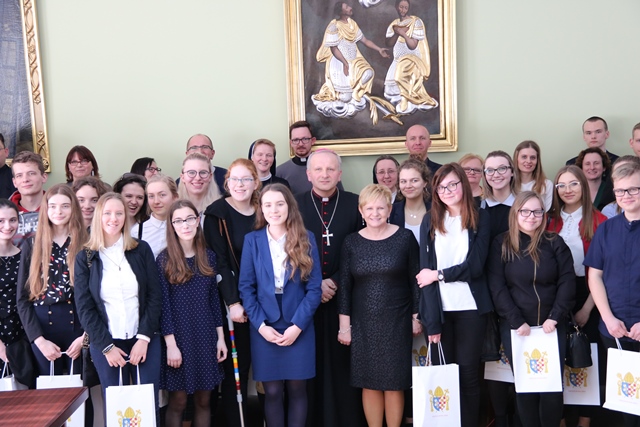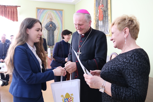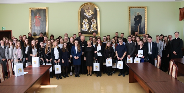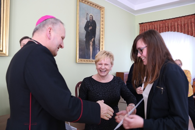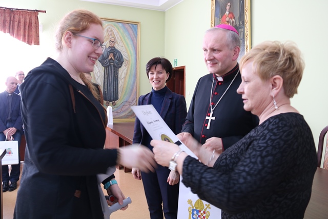 Uczestnikom olimpiady gratulowała Violetta Słupianek z kaliskiej Delegatury Kuratorium Oświaty w Poznaniu. – Cieszę się, że propagujecie tę olimpiadę w swoich szkołach ze względu na chrześcijańskie wartości, które są częścią naszej spuścizny europejskiej, ale również polskiej. Czy można sobie dziś wyobrazić naszą historię bez chrześcijaństwa? Polska jest szczególnie związana z myślą chrześcijańską i teologią katolicką. Na pewno tą wiedzą będziecie dzielili się w swoich szkołach i te chrześcijańskie korzenie będziecie mogli pokazywać w naszym państwie – powiedziała kurator oświaty.