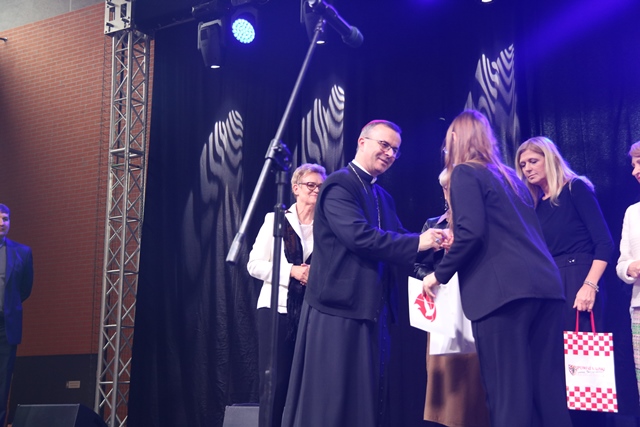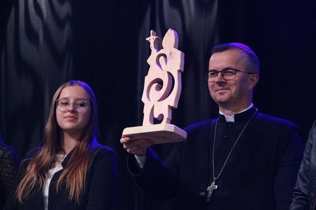 Fot. Ewa Kotowska-Rasiak/KAIRozalia Piątkowska z Kalisza zdobyła nagrodę Grand Prix XI Diecezjalnego Festiwalu Pieśni Religijnej „W hołdzie Ojcu Świętemu Janowi Pawłowi II”. Nagrodą jest wycieczka do Włoch. W koncercie galowym uczestniczył biskup kaliski Damian Bryl.