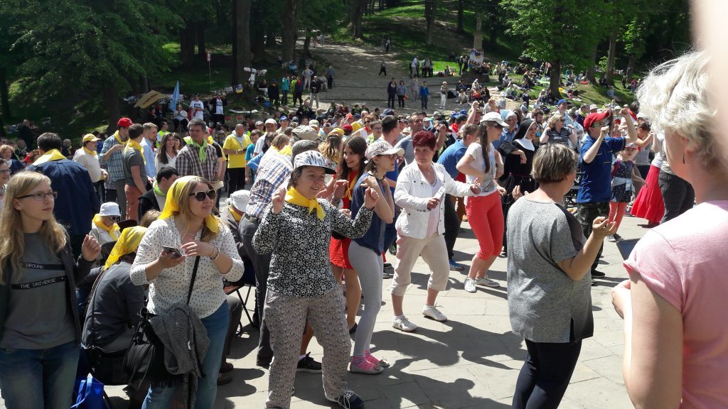 Następnie rozpoczęło się wielkie, wspólnotowe święto. Olbrzymi plac przed sanktuarium wypełniły taneczne korowody, półtora tysiąca osób niepełnosprawnych i ich przyjaciół.