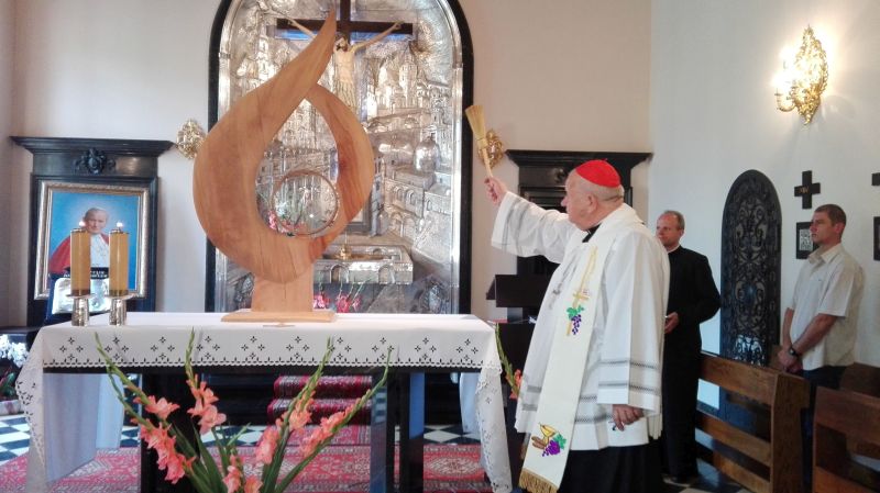 Poświęcenie monstrancji odbyło się w środę 20 lipca o godz. 12.00 w kaplicy kurii metropolitalnej. Dokonał tego kard. Stanisław Dziwisz. W dzień rozpoczęcia Światowych Dni Młodzieży monstrancja stanie w Namiocie Adoracji w Parku Jordana, gdzie wartę przy Najświętszym Sakramencie pełnić będą Rycerze Kolumba, a nad porządkiem czuwać Skauci Europy.