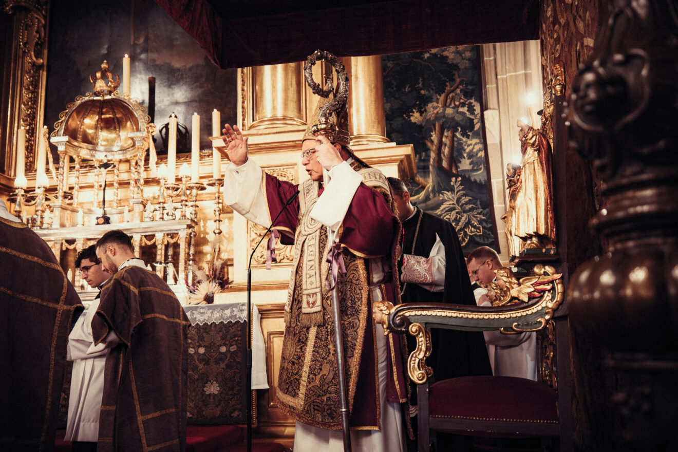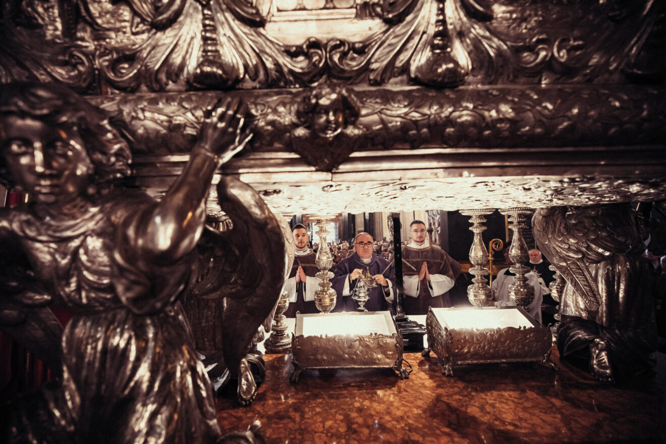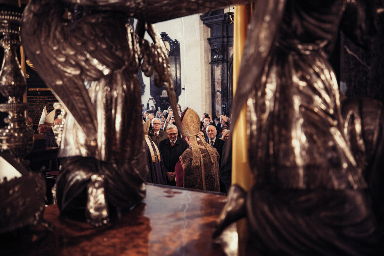 O godz. 10.30 kard. Grzegorz Ryś, przy dźwięku „Zygmunta”, przekroczył próg katedry wawelskiej. Został powitany przez Kapitułę Metropolitalną, ucałował krzyż a wiernych pokropił wodą święconą. Przy konfesji św. Stanisława oddał cześć relikwiom głowy patrona katedry i krakowskiego Kościoła a następnie udał się na krótką modlitwę do kaplicy Najświętszego Sakramentu.
