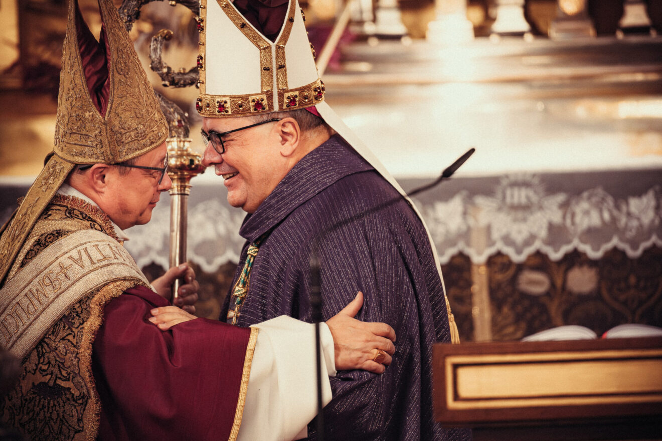 – Przez pocałunek ołtarza wziąłeś tę wspólnotę jak oblubienicę. Przez zajęcie miejsca na katedrze bądź nam nauczycielem i pasterzem, pobudzaj i utwierdzaj. Dopełnij miary wielkich ogrodników tej winnicy Pańskiej. Niech cię oświeca Ducha Święty, abyś z powierzonym ci Kościołem jak najpełniej wyraził troskę o Chrystusowe dzieło zbawienia ludzi żyjących tu i teraz – składał życzenia ks. prof. Jacek Urban.