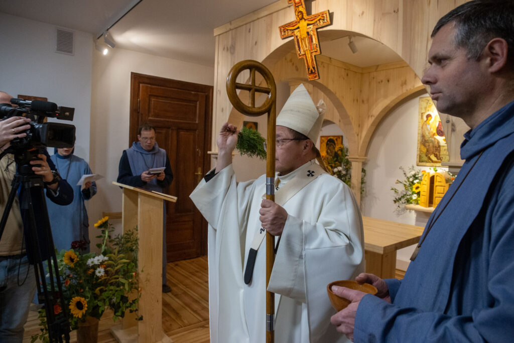 Rozbudowana liturgia rozpoczęła się od poświęcenia kaplicy, błogosławieństwa Ikony Trójcy Świętej oraz Krzyża z San Damiano, a tuż przed rozpoczęciem liturgii słowa kard. Ryś poświęcił ambonę, z której będzie przepowiadane słowo Boże.