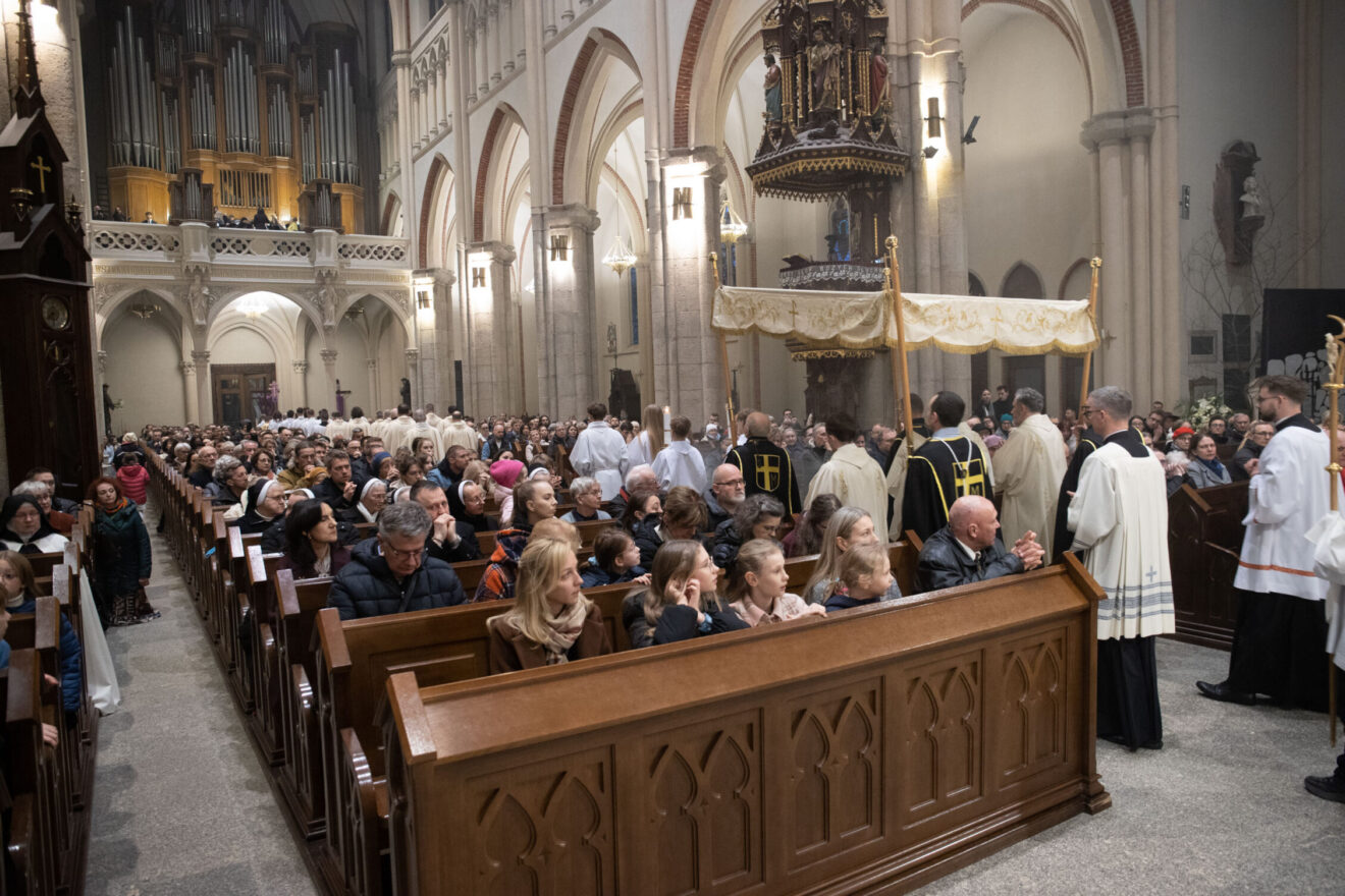 Fot. ks. Paweł KłysMszą Wieczerzy Pańskiej Kościół rozpoczyna uroczysty obchód Triduum Paschalnego, a więc najważniejszych dni w całym roku liturgicznym. W łódzkiej katedrze wieczornej liturgii upamiętniającej ustanowienie Sakramentu Eucharystii i Kapłaństwa przewodniczył kardynał Konrad Krajewski – metropolita łódzki. – Jezus przyszedł do wszystkich – do obolałych, do chorych, do rozwiedzionych, do tych, którzy nie mogą sobie ze swoją osobowością poradzić, do złodziei, do prostytutek. Przyszedł do wszystkich! Umył nogi także Judaszowi. To zaangażowanie wobec drugiego człowieka rodzi się z Eucharystii – mówił kard. Krajewski.