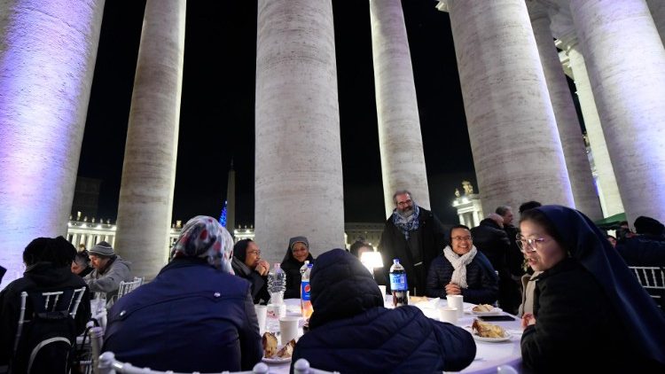 „Biedni, włóczędzy i żebracy dostali możliwość pracy i papieską pensję i pod okiem najlepszych mistrzów budowali tę kolumnadę” – mówi kard. Krajewski. Dodaje, że z czasem nad kolumnadą powstało zadaszenie, by pielgrzymi i biedni mogli się schronić w jej cieniu a także spędzić tam noc. Teraz pod Kolumnadą Berniniego do wyjątkowej kolacji zasiedli wybrani przez Jezusa, czyli ubodzy. „Zaprosiliśmy ich, by przywrócić im godność i być razem z nimi właśnie w takim momencie bardzo znaczącym, kiedy blask choinki będzie oświetlał całą kolumnadę zbudowaną przecież także dzięki bezdomnym, biednym i żebrakom. To był piękny wieczór. Pięknie zastawione stoły z palącymi się lampkami, białe obrusy, białe krzesła” – mówi papieski jałmużnik.
