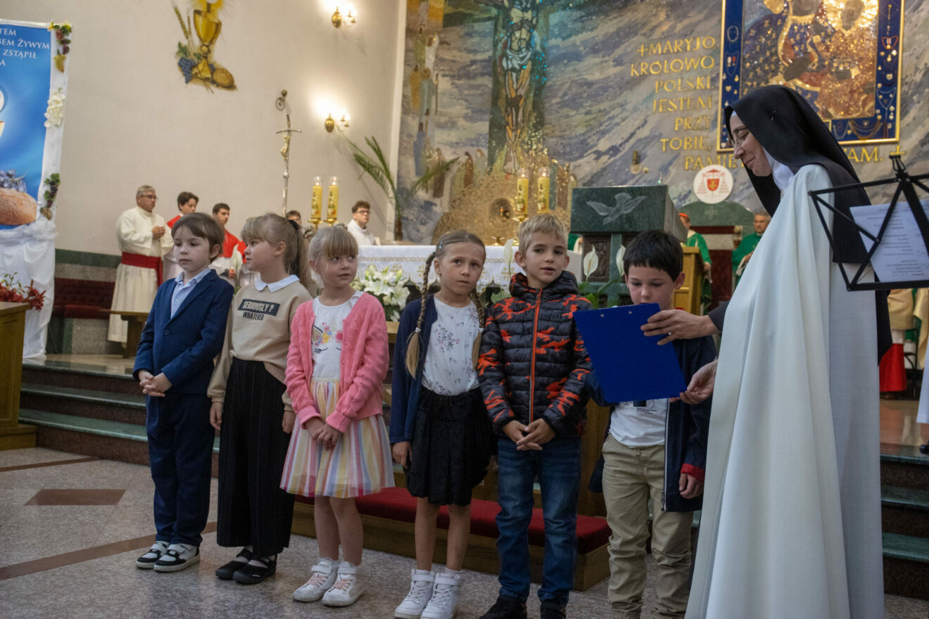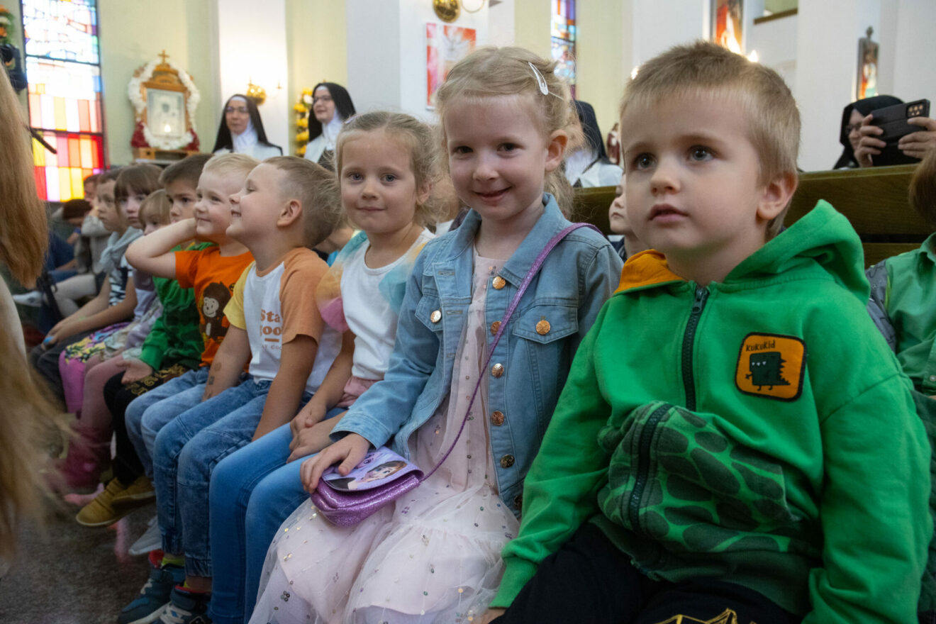 Przedszkolaki wraz z siostrami zaangażowały się w przygotowanie dzisiejszej Eucharystii. Dzieci odczytały modlitwę powszechną, niosły dary ofiarne oraz śpiewały pieśni podczas Mszy świętej.