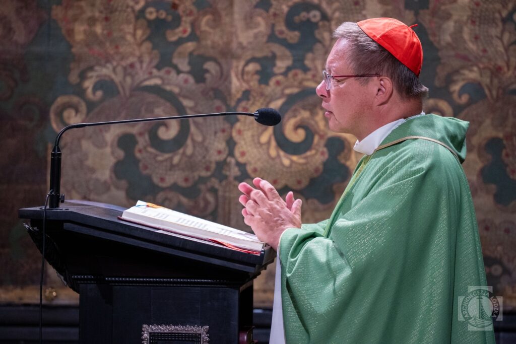 W homilii metropolita łódzki powiedział o znaczeniu Kościoła w odniesieniu do liturgii słowa. Pierwsze czytanie podkreśla, że lud Boga ma długą tradycję. – Jesteśmy dziedzicami Abrahama. Dzisiaj Jozue mówi, że mamy wybierać Pana, bo mamy przed sobą prawie 4000 lat temu kogoś, kto jest praojcem naszej wiary. Kogoś, kto pokazywał, co to znaczy wybrać Boga. To znaczy, że budujesz najpierw ołtarz, a potem dom – zaznaczył duchowny. – Jesteśmy niesłychanie pomysłowi w konstruowaniu bożków. Ilu bożków człowiek potrafi sobie stworzyć. Wykopcie dzisiaj dół i wrzućcie je tam – powiedział.