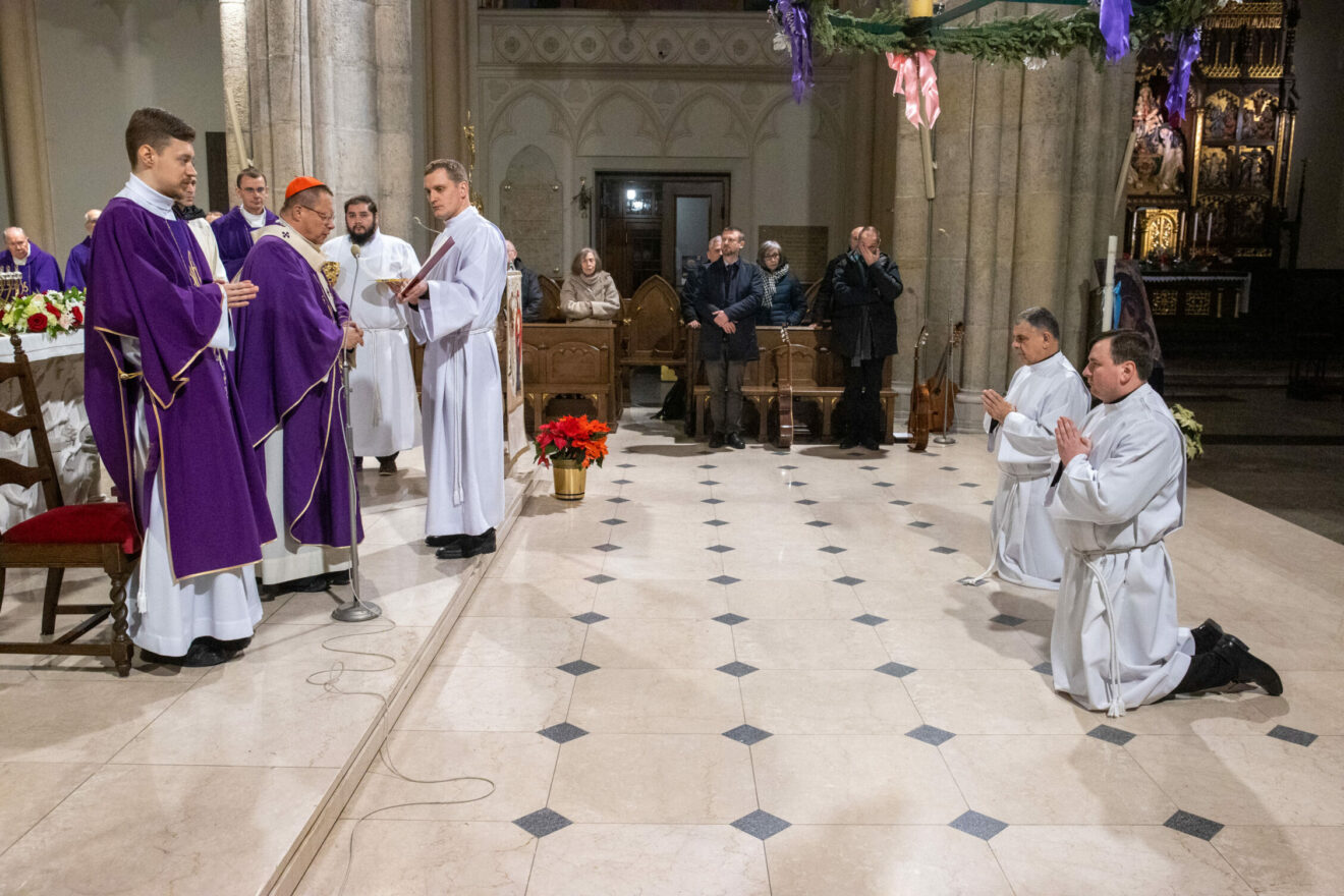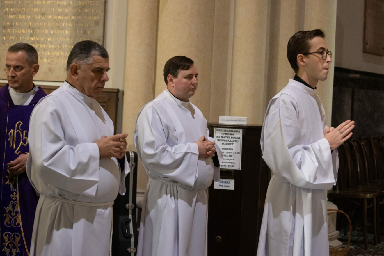 Fot. ks. Paweł KłysNie róbcie rzeczy dla Boga. Róbcie rzeczy Boże – mówił kardynał Grzegorz Ryś podczas uroczystej Eucharystii w łódzkiej bazylice archikatedralnej. Msza była połączona z obrzędem lektoratu i akolitatu trzech alumnów Archidiecezjalnego Seminarium Redemptoris Mater, istniejącego od 2019 roku jako drugie Seminarium Drogi Neokatechumenalnej w Polsce.
