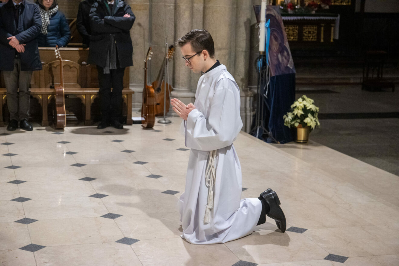 Po homilii, kandydaci do przyjęcia posług zostali wezwani przez rektora Seminarium Redemptoris Mater i podeszli do ołtarza, gdzie otrzymali odpowiednie insygnia: księgę Pisma Świętego – lektor, oraz dary chleba i wina – akolici. Następnie biskup udzielił im błogosławieństwa, uprawniającego do wypełniania posług w zgromadzeniu liturgicznym.