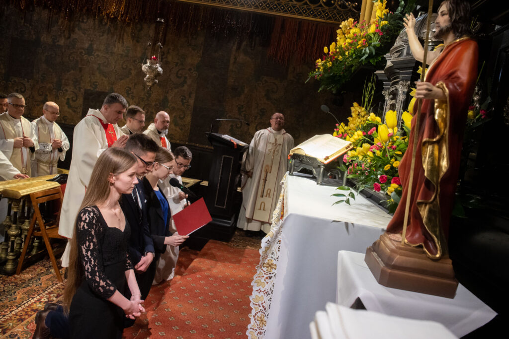 W południe tegoroczni maturzyści wzięli udział we Mszy świętej w kaplicy Cudownego Obrazu Matki Bożej. Liturgii przewodniczył metropolita łódzki, kard. Grzegorz Ryś. Wraz z kończącymi w tym roku szkołę średnią modlili się księża katecheci oraz nauczyciele i wychowawcy młodych.